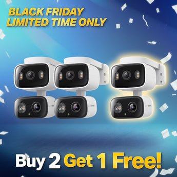 The two cameras dynamically work together to ensure you never miss a moment – when the fixed lens detects events like motion, people, and pets, the pan/tilt lens will automatically pivot to focus on and track the moving object.